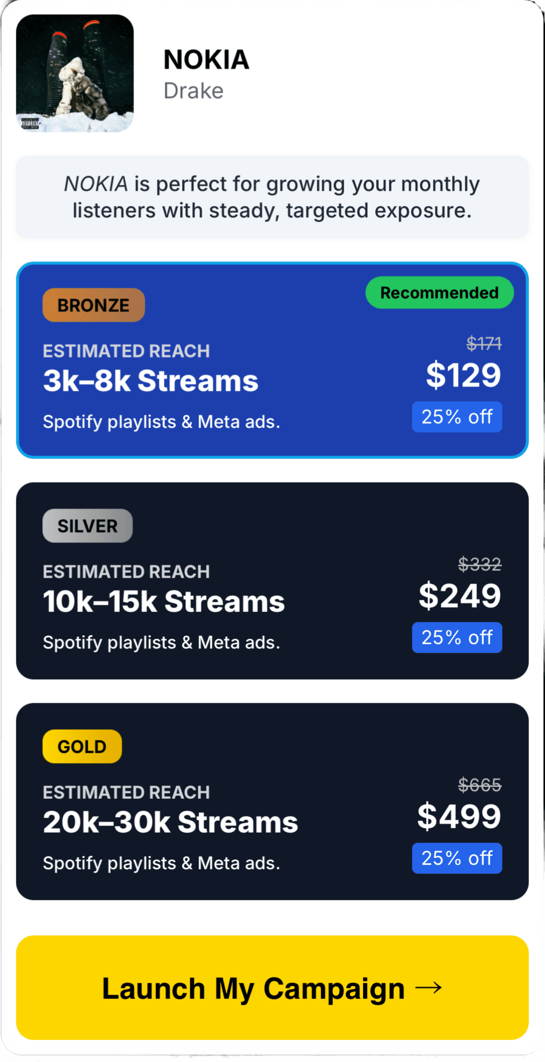Every campaign uses paid ads and manual playlist pitching to deliver real, engaged listeners.